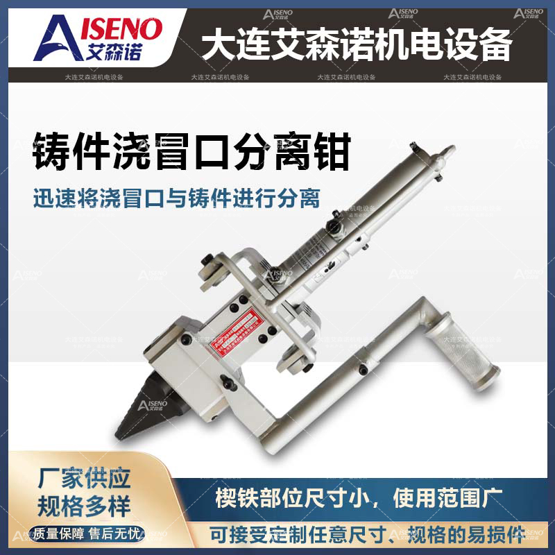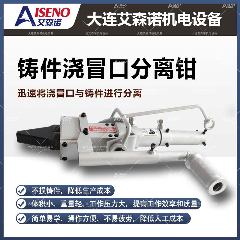 鑄件澆冒口分離工具,在不損傷制品的情況下將鑄件澆冒口、澆道等多余部分分離,便于回爐再利用。其具有體積小,重量輕、工作壓力大、破壞力強等優(yōu)點。世界著名汽車、機械制造廠家都在使用艾森諾產(chǎn)品。艾森諾產(chǎn)品機型種類豐富,大致分為:澆冒口分離器、澆冒口氣動沖擊錘,擊斷器及液壓泵站等,產(chǎn)品適用范圍廣,用戶可以根據(jù)鑄件的材質(zhì)、形狀、大小來選擇適合自己產(chǎn)品的分離工具。