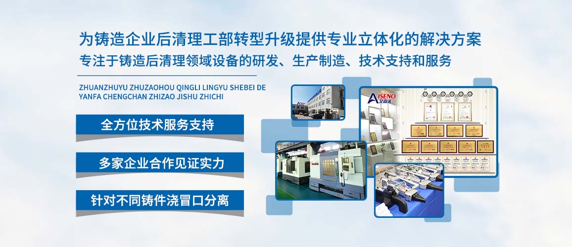 大連艾森諾機電設備有限公司(Aiseno),專注于鑄造后清理領(lǐng)域設備的研發(fā)、生產(chǎn)制造、技術(shù)支持和服務。致力于成為鑄造行業(yè)的好幫手,為鑄造企業(yè)后清理工部轉(zhuǎn)型升級提供專業(yè)立體化的解決方案。