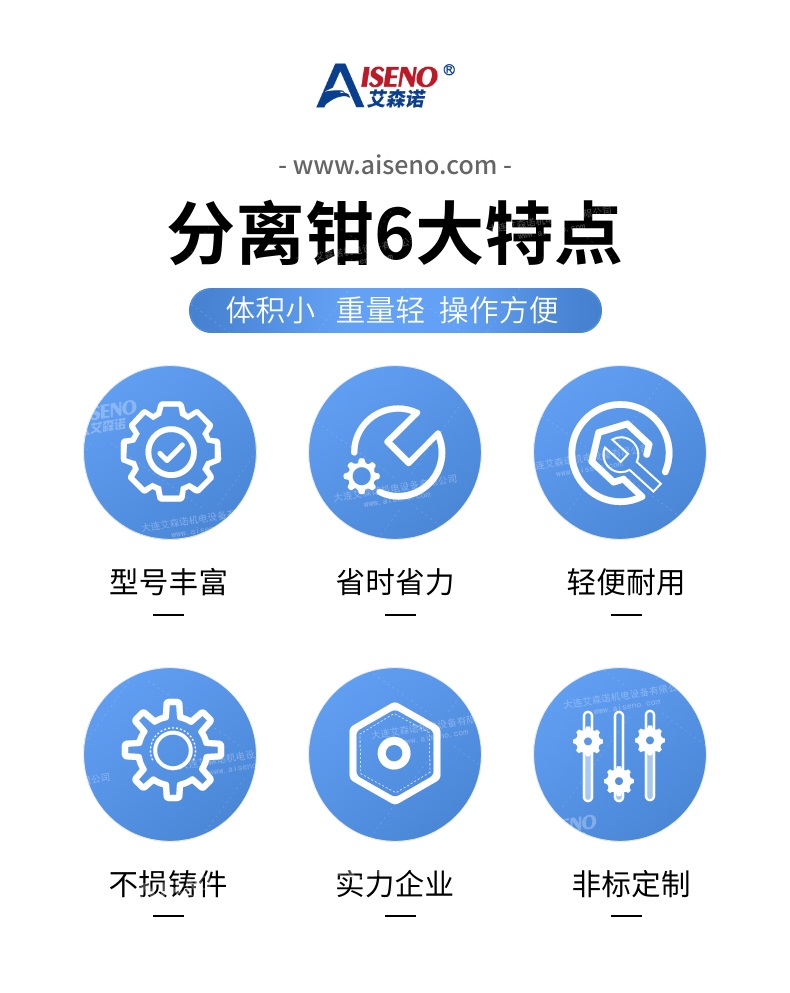 總之,大連艾森機(jī)電設(shè)備有限公司的鑄件澆冒口分離鉗以其體積小、重量輕、工作壓力大、高效分離、易操作、穩(wěn)定性高、維護(hù)成本低等眾多優(yōu)勢,成為了工業(yè)生產(chǎn)中的得力助手。它為企業(yè)提高工作效率、降低成本、創(chuàng)造更多經(jīng)濟(jì)效益提供了可靠的解決方案。